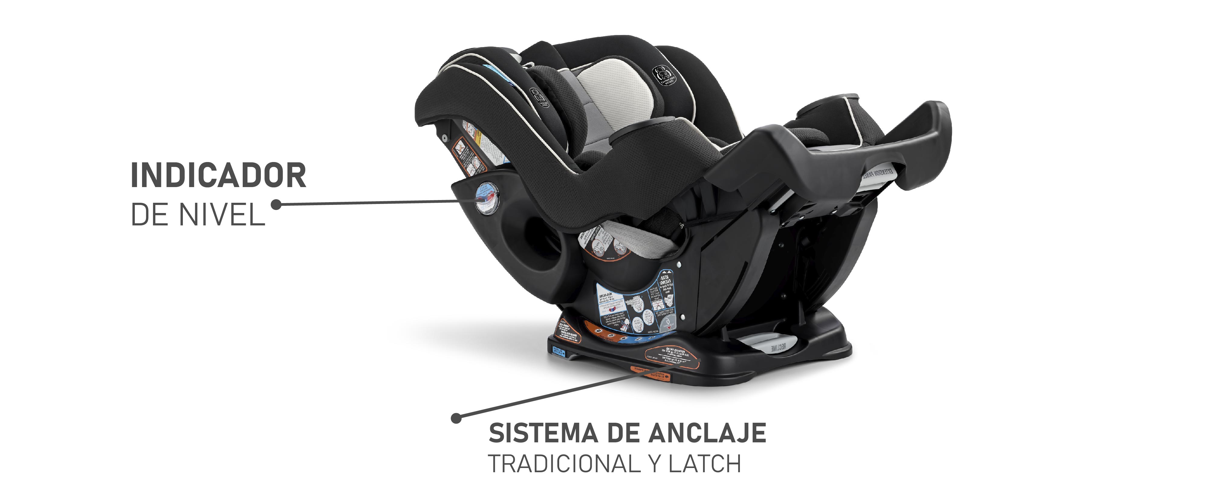 ¡La Extend2Fit cuenta con un indicador de nivel que nos facilita la correcta instalación de la butaca, esta misma es apta para anclarla con el cinturón del auto o si contamos con isofix, la butaca nos incluye el sistema LATCH propio de la homologación FMVSS213, es compatible con el isofix del auto!