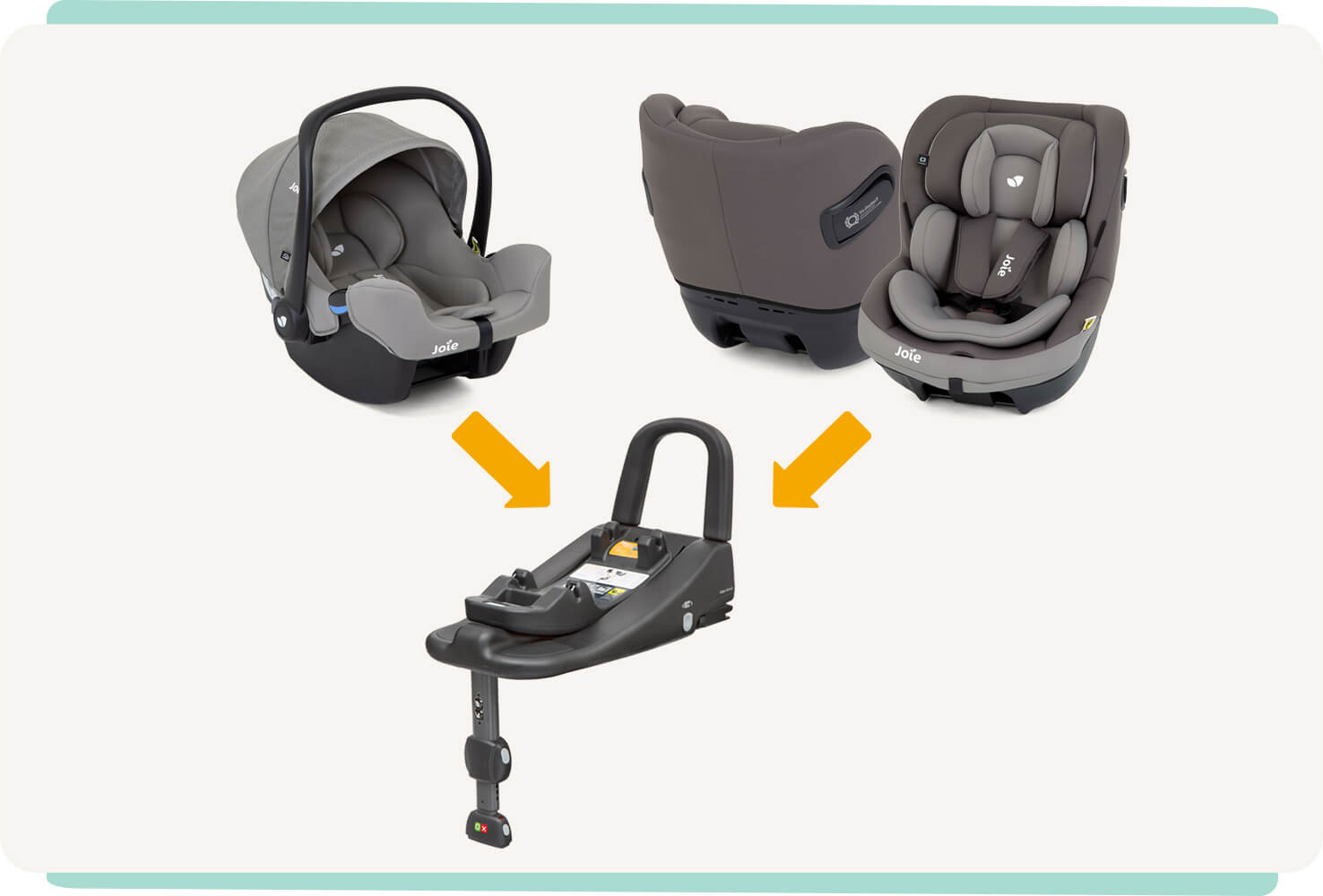 · Compatible con los portabebés Joie i-Snug™ 2 y i-Gemm™ 3, así como con la silla infantil Joie i-Venture™ tanto orientados a contramarcha como a favor de la marcha, para ofrecerte un único sistema que se adapta desde el nacimiento hasta los 4 años, aprox.